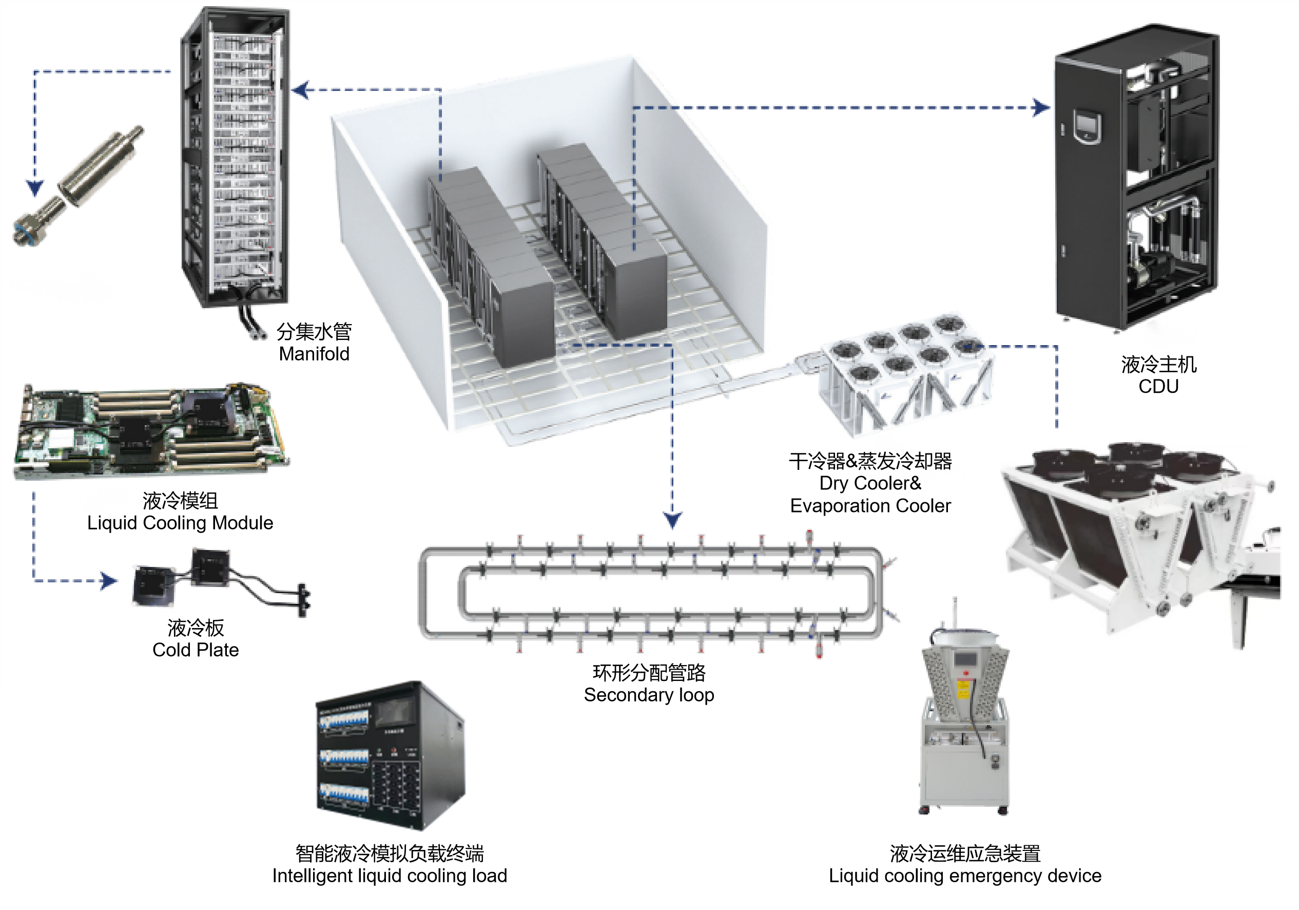Complete liquid cooling infrastructure solutions for AI data centers, from chip-level to system-level cooling, with full power range coverage from 500W to 1000kW.